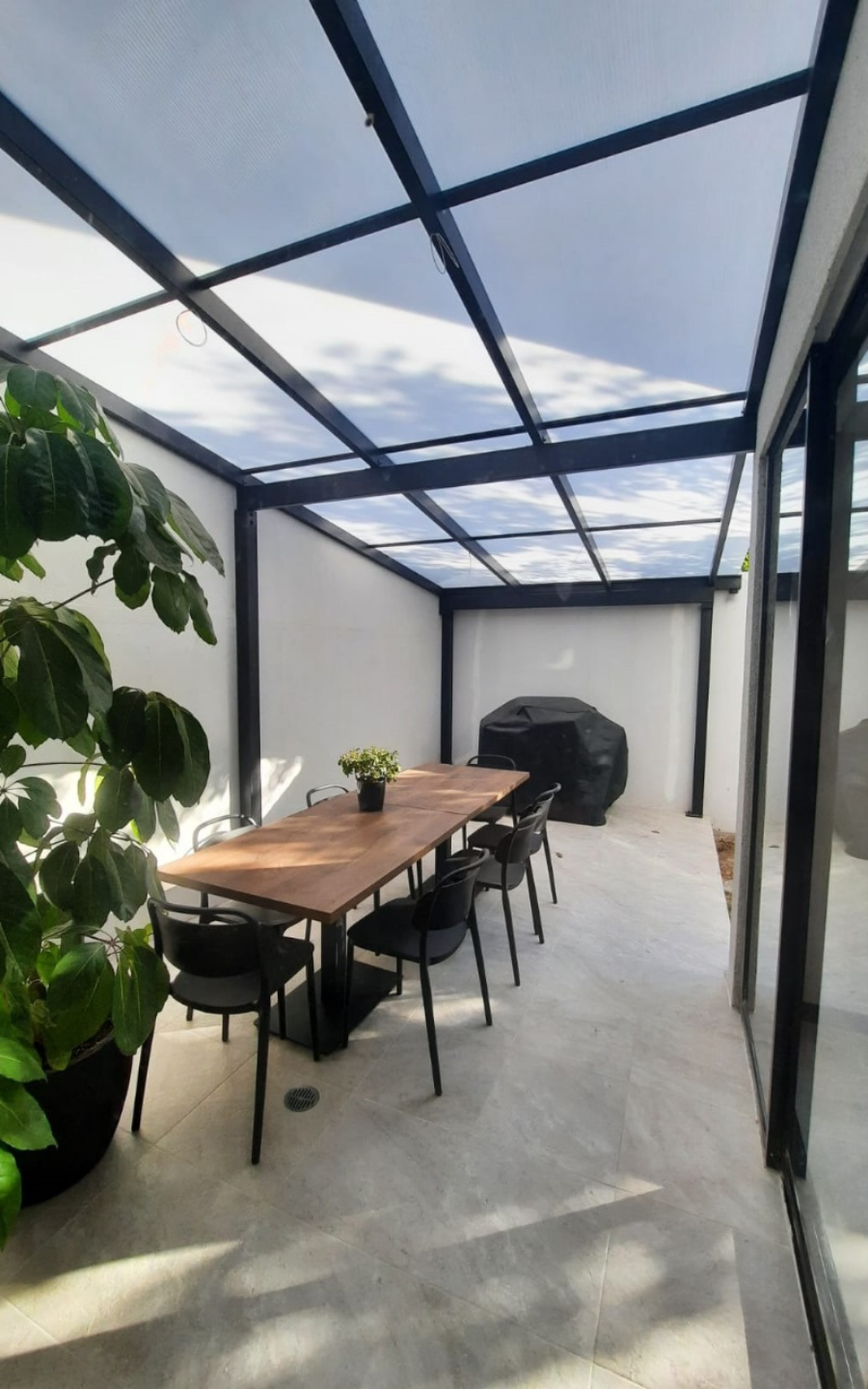 * Área de BBQ con pergola
